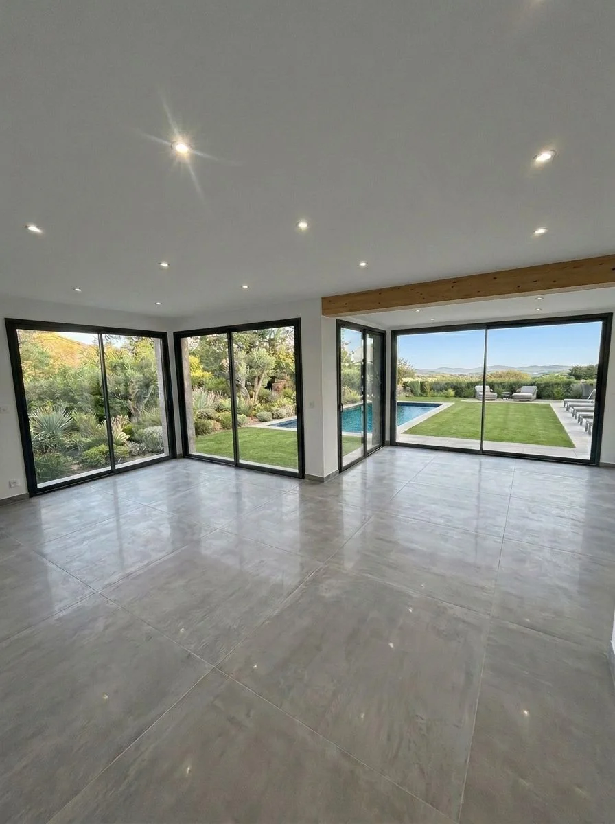 - Baies vitrées et galandages : grand format pour maximiser la lumière naturelle